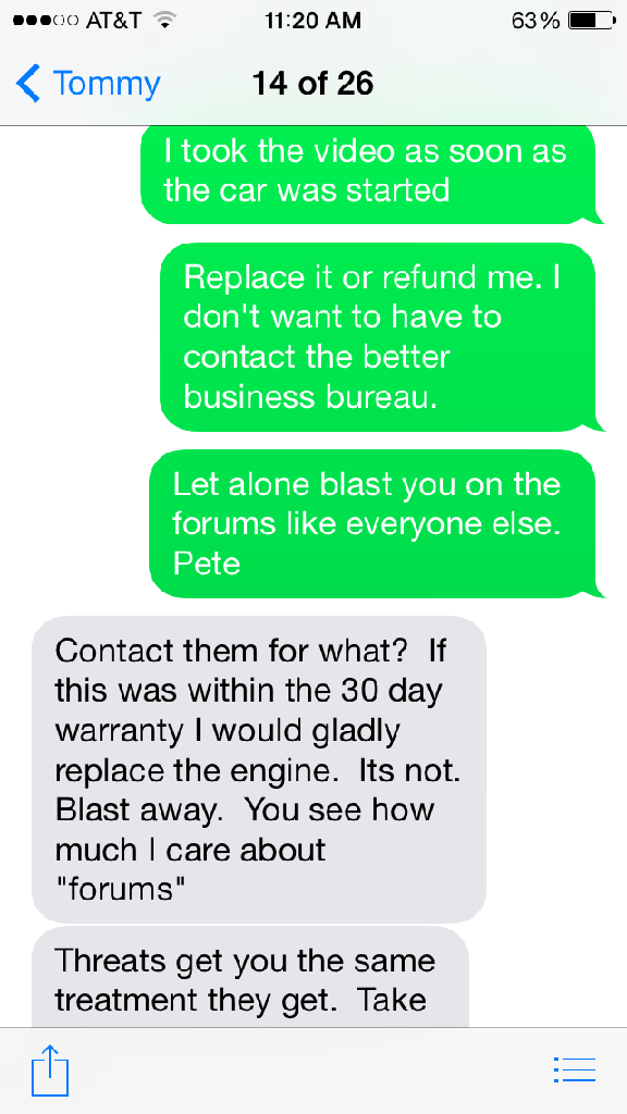 I just wanted to post this here incase anyone had planned on getting any parts from PMPAutoGroup. The owner has a large amount of communication issues when something comes back to him. Be sure to look else where for any parts or motors. He is not a official vendor on here luckily.